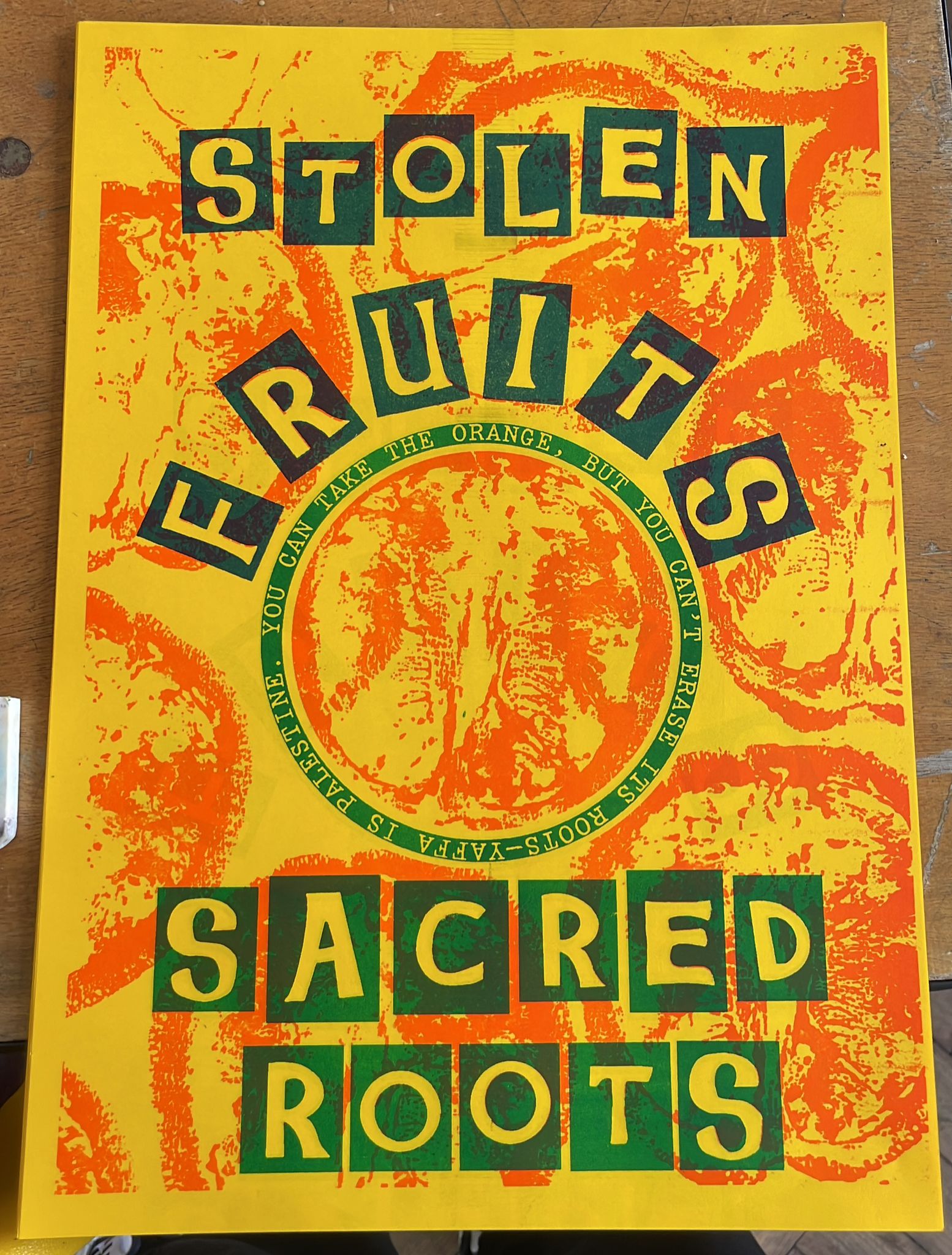 This piece emerges from a need to confront how symbols of Palestinian life such as land, labor, and fruit have been severed from their origins and rebranded under occupation. The orange, once a proud emblem of Palestinian agriculture and identity, now often appears stripped of context, sold without acknowledgment of the land or people it came from.